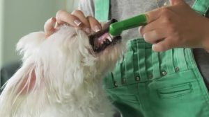 • A professional cleaning: You should take your pet to the vet at least once a year to have their teeth checked and cleaned of tartar that brushing can’t get to.